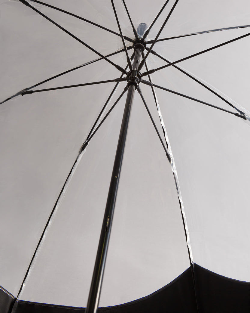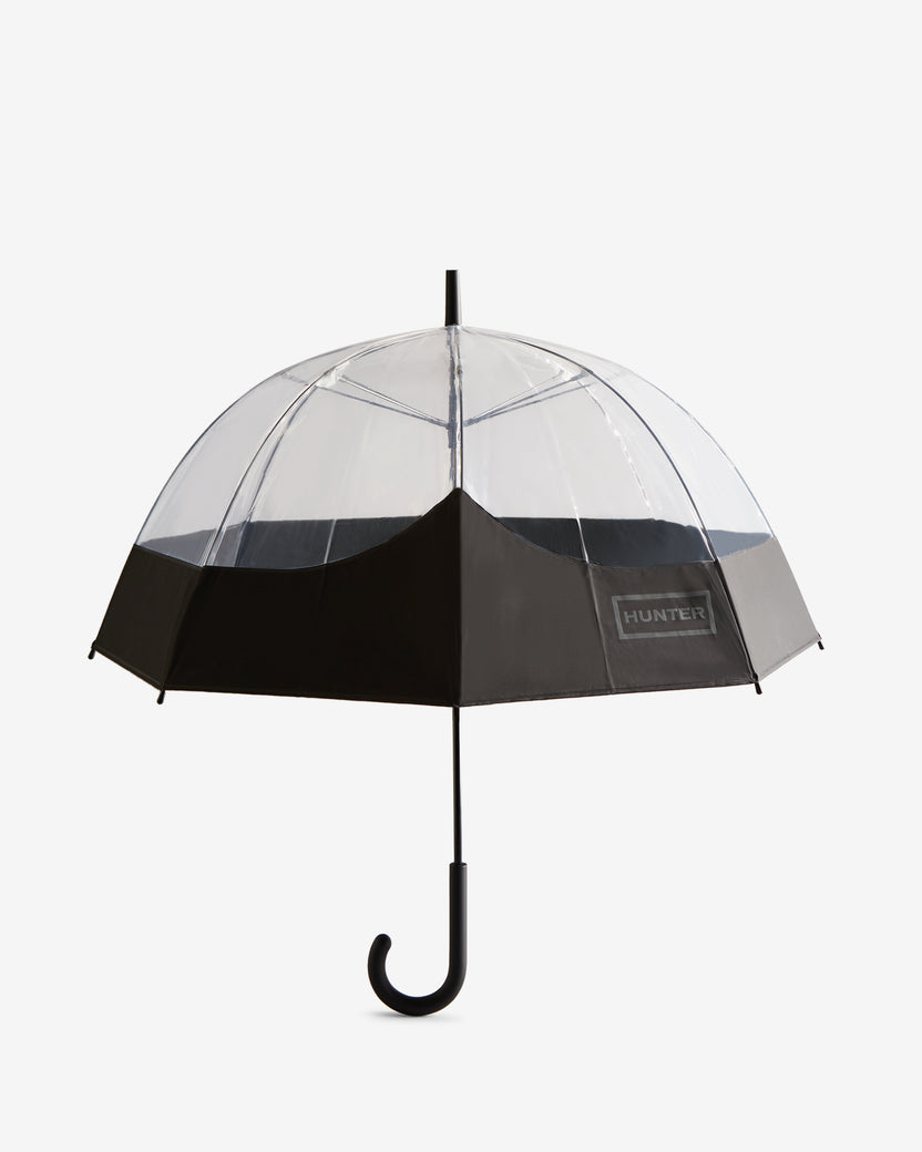 Un paraguas burbuja transparente. Los adornos atrevidos de colores en la cubierta forman el bigote Hunter, un distintivo de la bota alta Original.