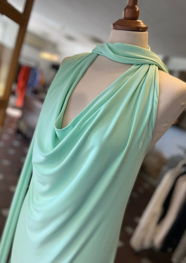 El tejido 100% poliéster tiene una caída preciosa que acompaña cada movimiento con naturalidad.