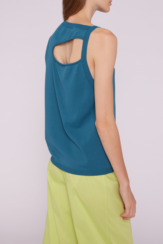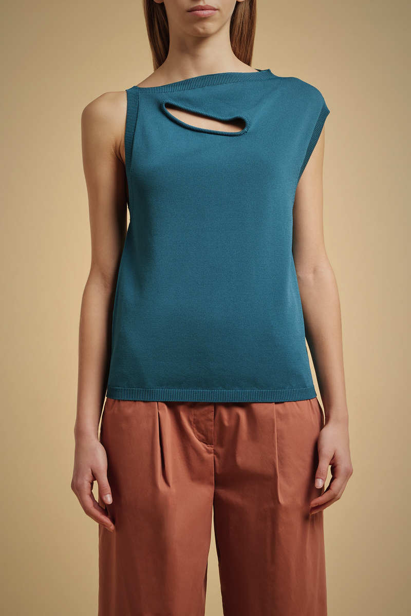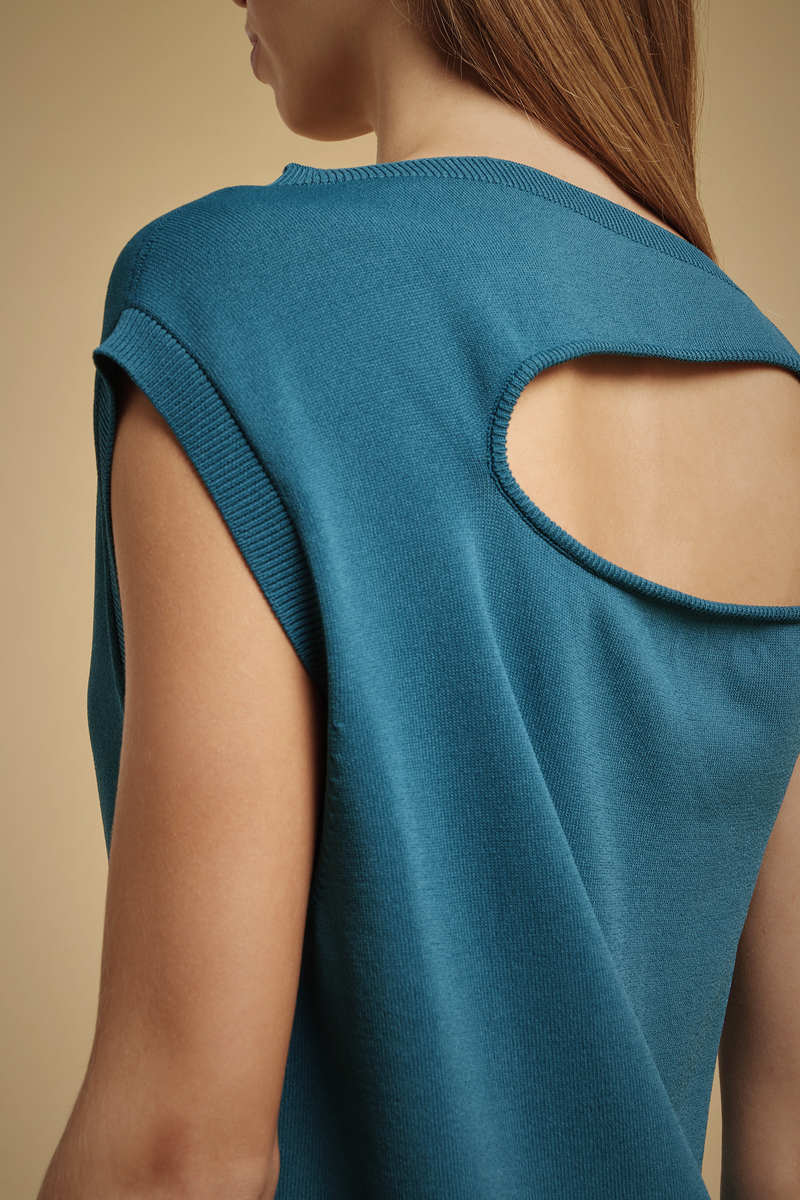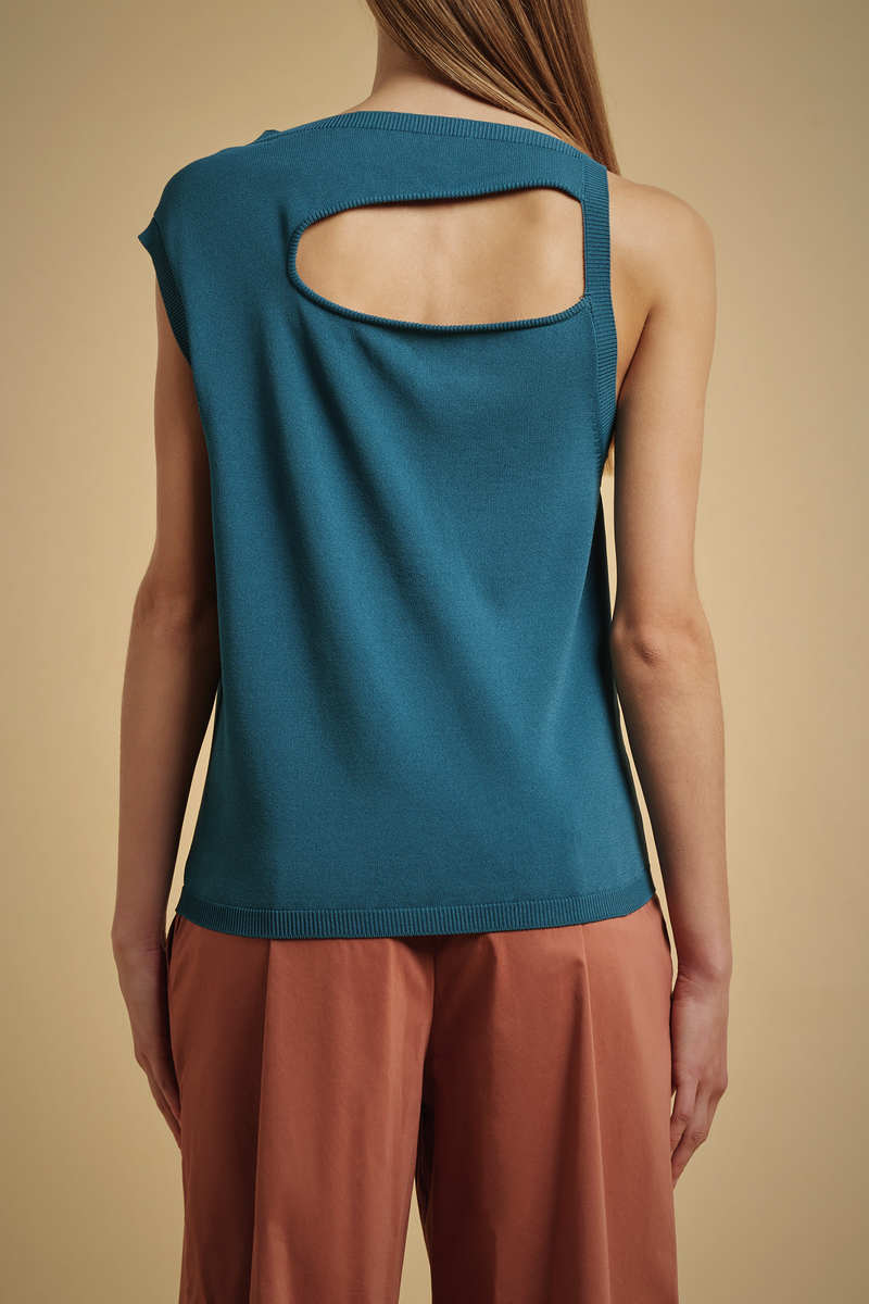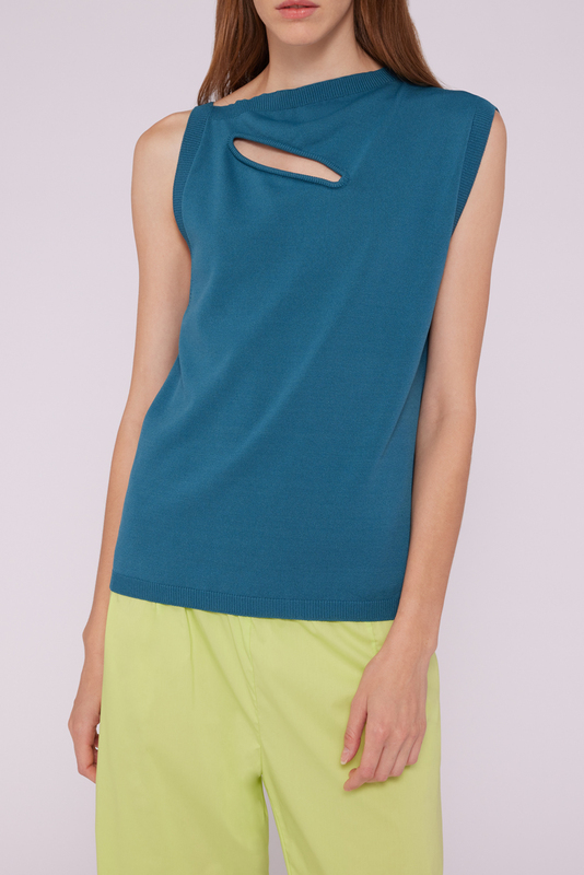 Top de canalé, escote redondo asimétrico, sisas, diseño con aberturas, corte delante/detrás.