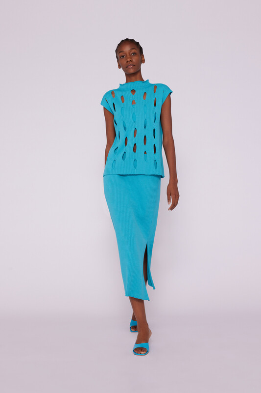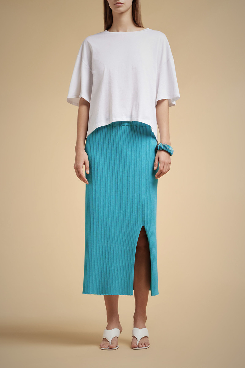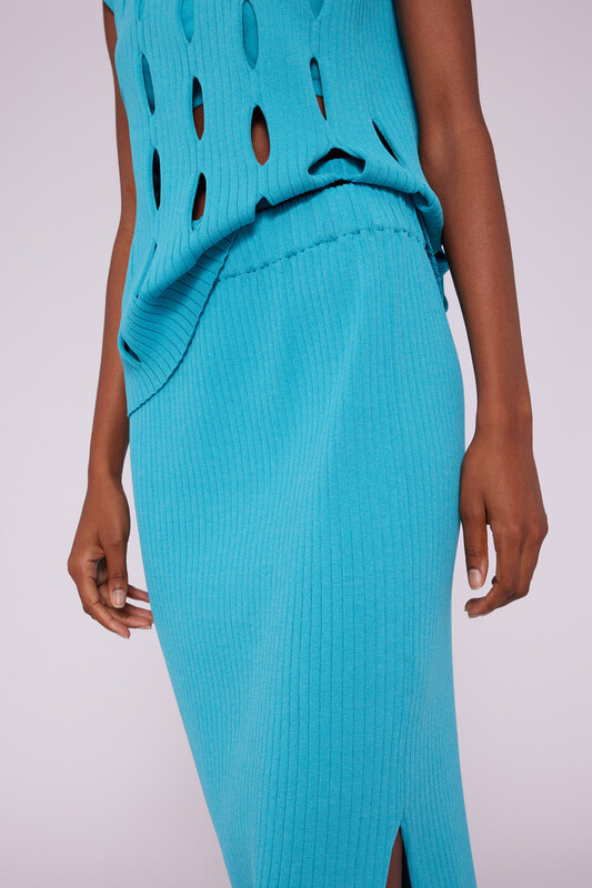 Falda tubo de canalé con corte lateral.