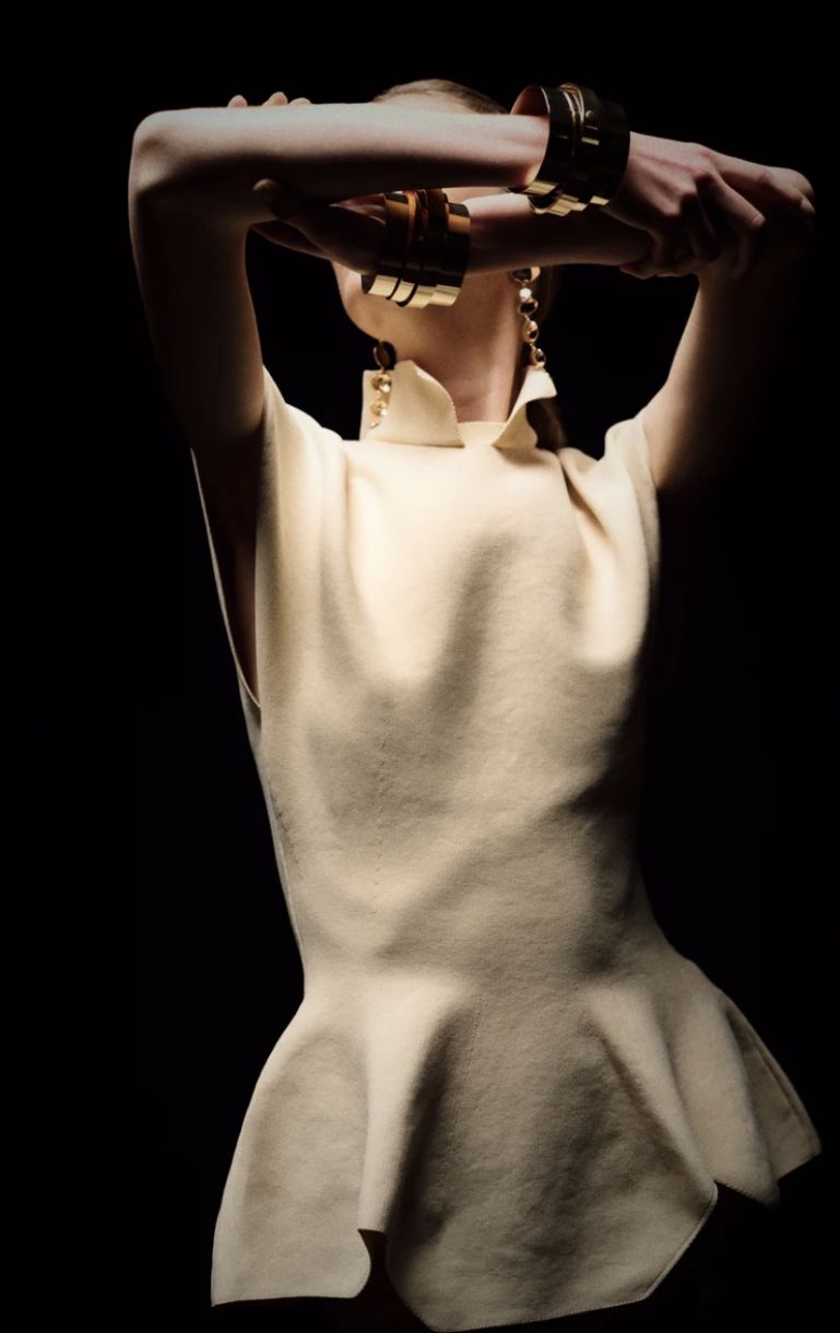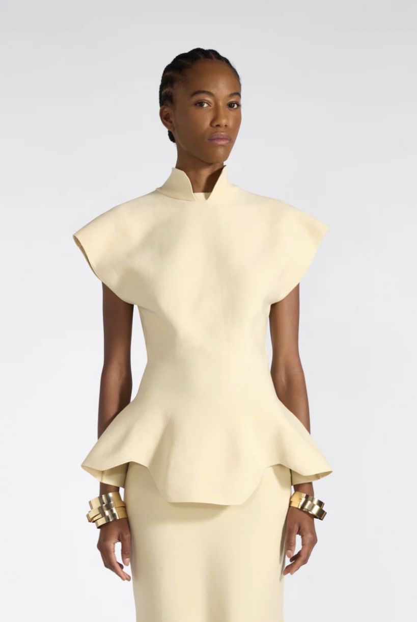 Top de punto de nylon técnico con mangas de mariposa.