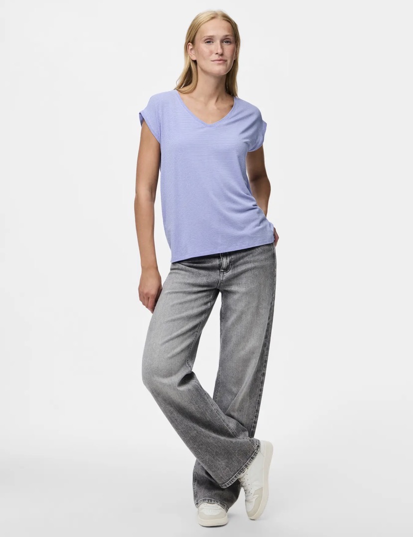 - Manga corta - Detalle de rayas en lurex dorado - Cuello redondo
