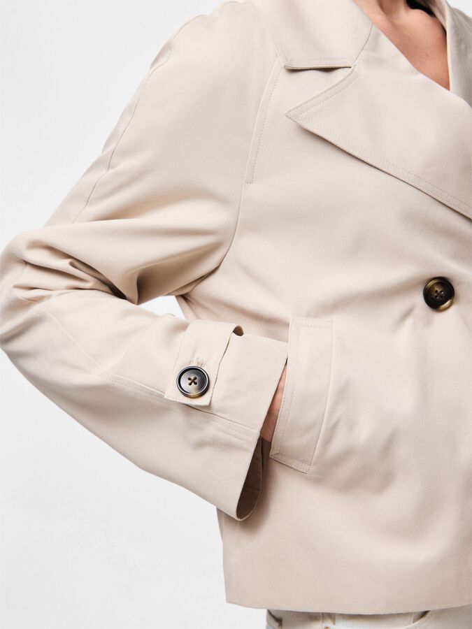 - Gabardina corta de doble botonadura