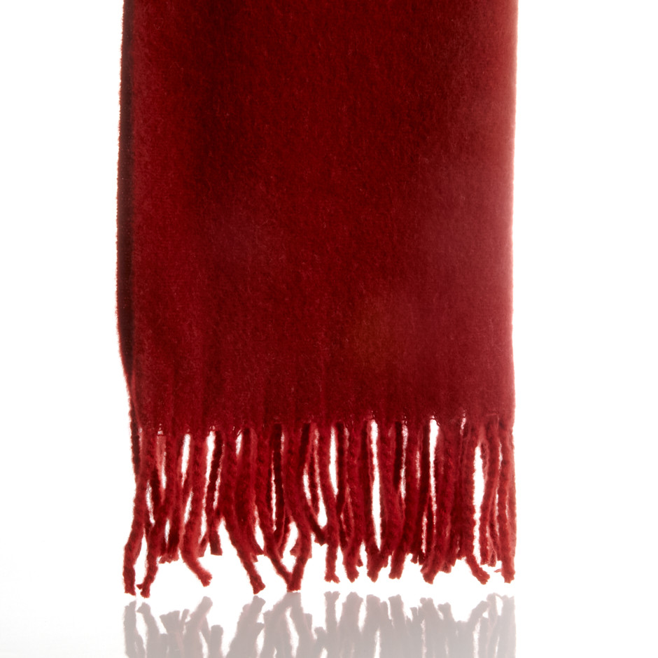 Bufanda en color rojo liso con terminaciones de flecos.