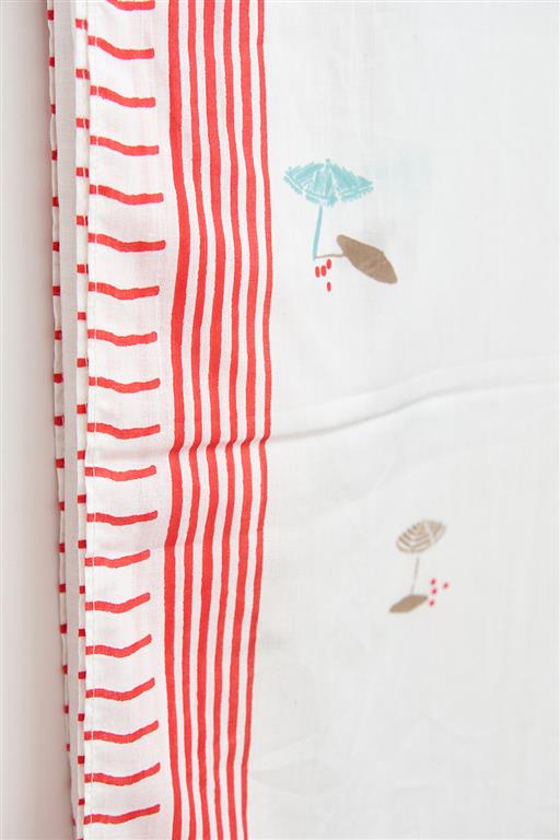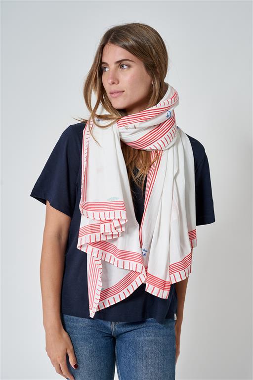 Fular de algodón con estampado de motivos playeros. Este fular tiene de 160 cm de largo y 105 cm de alto. Confeccionado en algodón suave, es ideal para un uso versátil, ya sea como accesorio de moda o para brindar un poco de calor en días frescos.