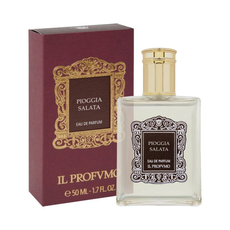 Inspirada por una gota de lluvia estival y por sus artífices (el cielo y el mar). Su contenido, lleno de contrastes de ozono, sal, flores y madera, constituye la alquimia. La parte poética presenta tonos leves, flores que encantan los sentidos, plantas balsámicas que hacen de Pioggia Salata un perfume delicado y pícaro, que al fundirse con la piel captura el placer de quien lo lleva y de quien lo recibe. Igual que la primera gota inspiradora.