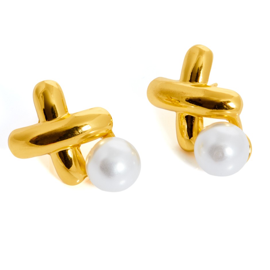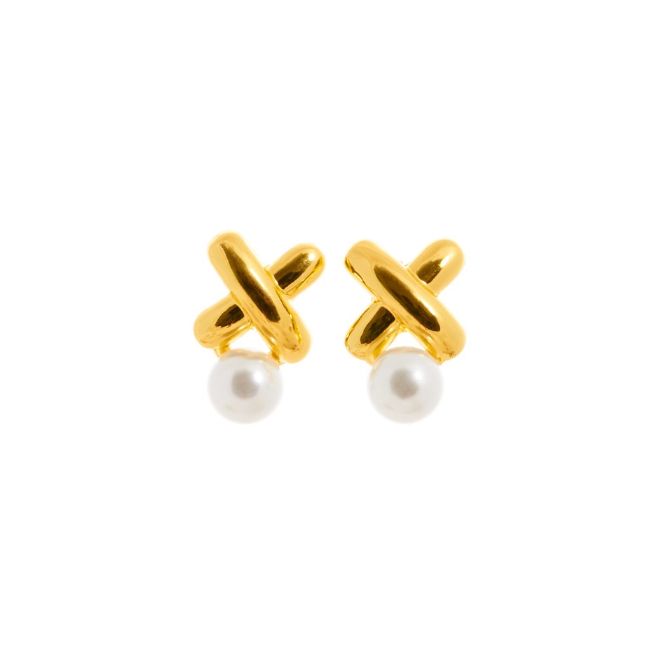 Pendiente con base en forma de cruz y perlita circular.